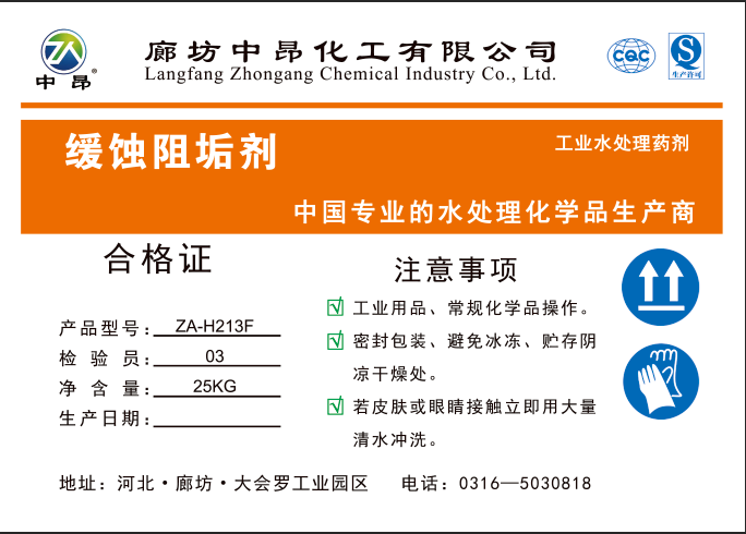 ZA-H213A緩蝕阻垢劑是我公司在總結(jié)日本栗田公司生產(chǎn)的S113性能特點的基礎(chǔ)上進一步研制開發(fā)的新型系列產(chǎn)品。ZA-H213A產(chǎn)品,根據(jù)分子的特性基團在水中大發(fā)揮了分散、螯合晶格歪曲的作用,將緩蝕阻垢性能提高了兩倍,在生產(chǎn)過程中融入了能增強分子群正負電荷推力的特性基團。從而又增強了該藥劑的耐溫性能。ZA-H213A產(chǎn)品連年被中石化、電力系統(tǒng)、冶金部認定為產(chǎn)品,在阻磷酸鈣方面明顯優(yōu)于傳統(tǒng)生產(chǎn)的國內(nèi)外同類產(chǎn)品。阻碳酸鈣也有了不同程度的增加,綜合指標超越了國內(nèi)外同類產(chǎn)品。ZA-H213A緩蝕阻垢劑是以丙烯酸及其多酯類多元共聚物、有機膦、銅緩蝕劑等多種原料正規(guī)工藝制成,在循環(huán)冷卻水系統(tǒng)中可有效地防止各種垢類的形成,對防止磷酸鈣的形成有特效,在高溫度和堿性條件下有很好的阻垢作用。經(jīng)專門檢測部門檢測和眾多用戶使用證明。ZA-H213A阻垢效果可達95.8%以上。由于阻垢效果是在高硬度、高堿度、高濃縮倍數(shù)下達到的,在正常運行時,濃縮倍數(shù)可達3.0-5.0,突破了水處理行業(yè)2.0的。向國際水準又邁進了一步!給我國循環(huán)冷卻水設(shè)備壽命延長了2倍,節(jié)省了幾倍的水資源。綜合效益有了很大提高,是目前國內(nèi)理想的新型緩蝕阻垢劑。